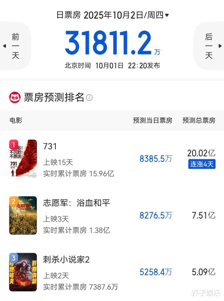 更让《731》没想到的是,预测还能拿下票房日冠!